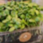 We grow a selection of microgreens on a regular basis, including multi-colored radishes, sunflower shoots and pea shoots. We can grow other microgreens to order such as broccoli, bok choi, arugula, other mustards, cilantro and basil.